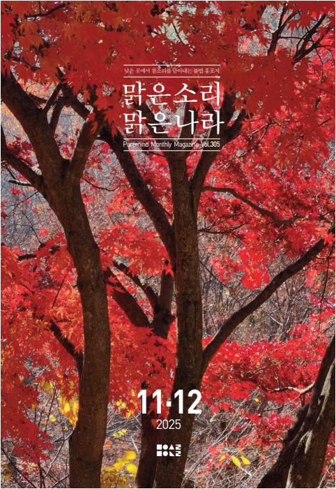 월간맑은2025 | [맑은소리맑은나라] 11,12월호<통권305호> 페이지 정보 작성자 맑은소리맑은나라 작성일25-12-17 08:17 조회22회 댓글0건 본문 ▶ 클릭하시면 2025년 11, 12월호 [맑은소리맑은나라] 플립매거진이 열립니다. 댓글목록 등록된 댓글이 없습니다. 이전글 다음글 목록